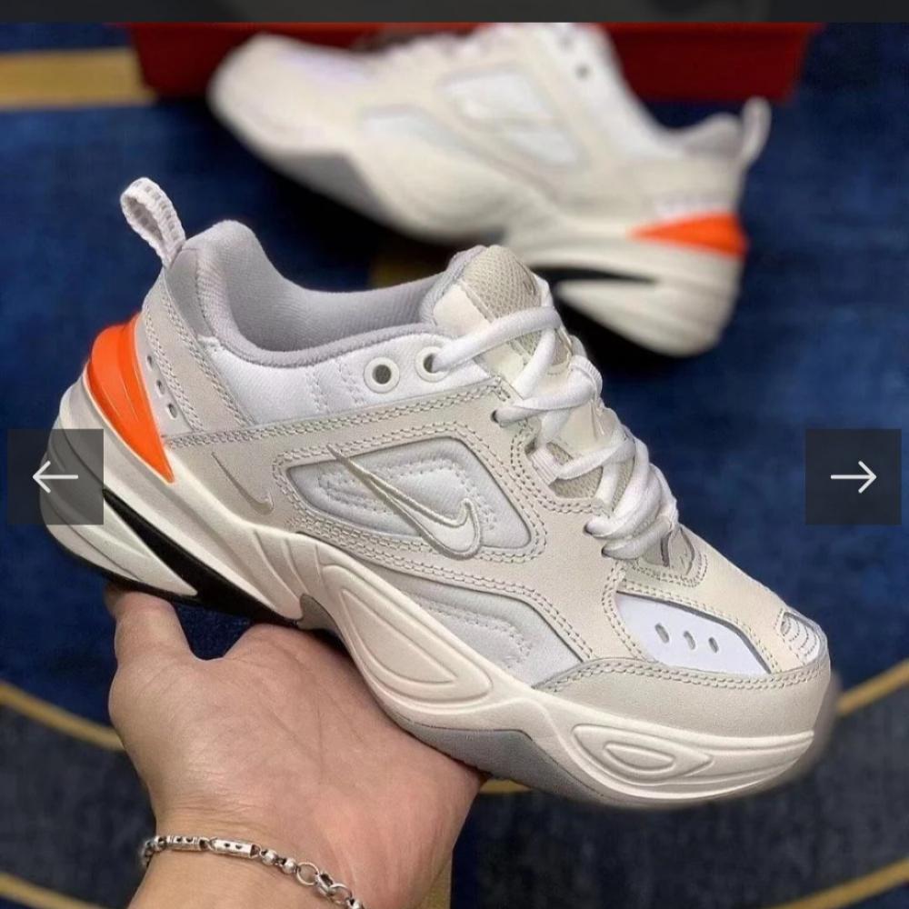 حذاء جري رياضي أزرق و بيج مناسب للرجال خفيف للجري بطبقة قماشية وسيور حول أوسط القدم للتدعيم نعل أبيض مرن لثبات على جميع الأرضيات مرتفع بمقدار 4سم